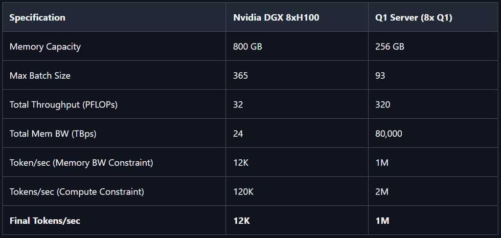 While some competitors have explored near-memory or in-memory computing architectures (e.g., Groq and Cerebras), these solutions often involve a trade-off. To increase bandwidth, they frequently sacrifice memory capacity due to memory density limitations in SRAM based logic chips. This compromise limits their ability to support large-scale deployments with multiple concurrent users.